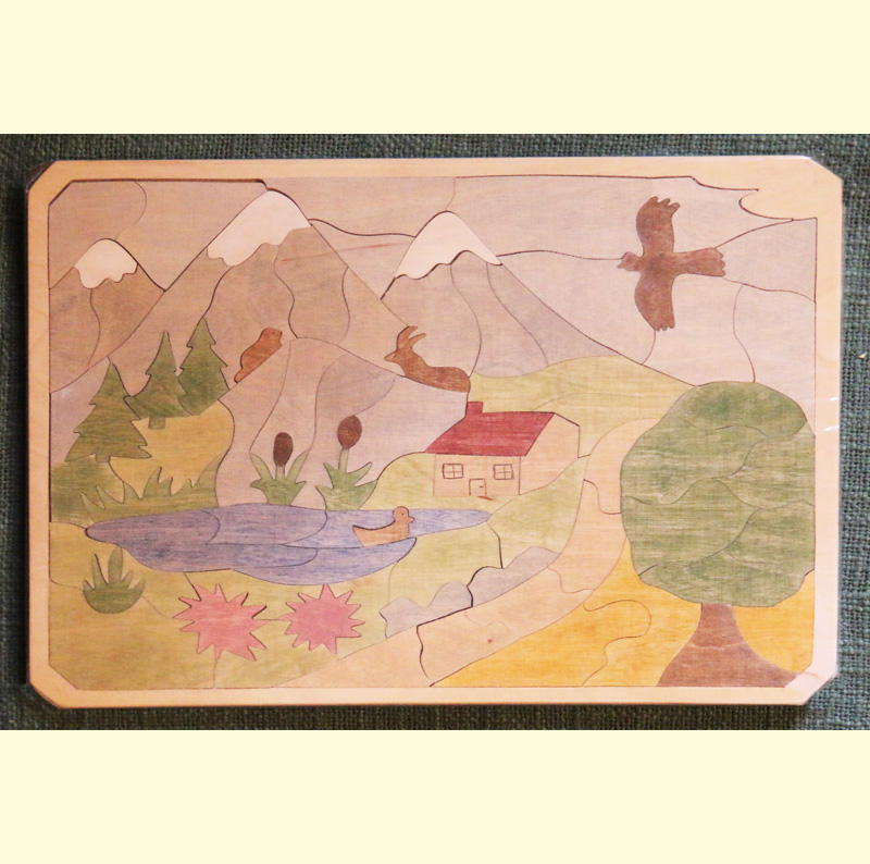 Ce puzzle montagne est composé de contreplaqué en bois de bouleau et en médium. Il est protégé avec une huile dure issue de matières premières écologiques (Marque AURO) et aussi coloré avec des pigments issus de matières premières écologiques. Ce qui permettra à l’enfant de l’utiliser sans aucun danger.